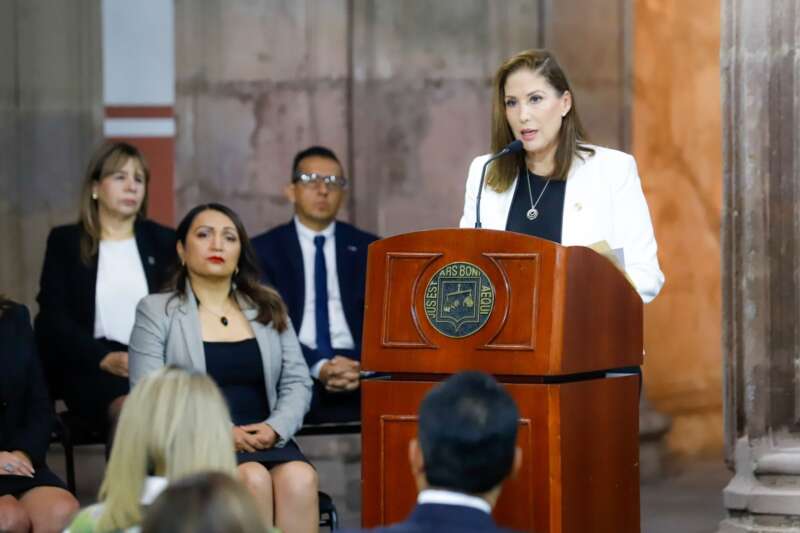 Ante el titular del Poder Ejecutivo, Alfredo Ramírez Bedolla; del presidente del Poder Judicial, Jorge Reséndiz García, así como de jueces, magistrados y funcionarios estatales, la legisladora invitó a luchar por una nación donde la ley sea respetada y aplicada en beneficio de las y los mexicanos.