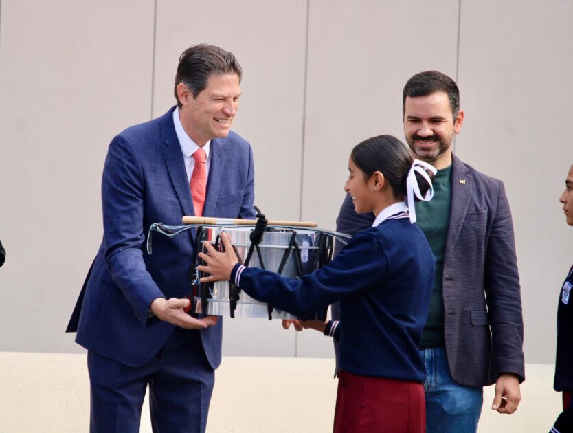 Por su parte, Rosalva Vanegas Garduño, secretaria de Bien Común, subrayó que a través del programa “Nuestros Valores Cívicos”, se beneficiará a más de 12 mil estudiantes, con la entrega kits de bandas de guerra y banderas, para fortalecer la identidad cívica, la disciplina y el trabajo en equipo, pilares para consolidar una sociedad con mayor cohesión y oportunidades.