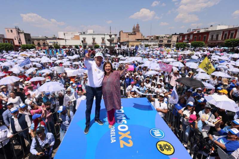 Entre aplausos y porras de la multitud, llamó a votar por Xóchitl y por los candidatos a legisladores del PAN y el PRD, para que el municipio tenga recursos y se multiplique el desarrollo.