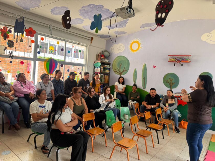 Durante la actividad, especialistas en psicología brindan herramientas a madres y padres de familia para mejorar la comunicación, el acompañamiento emocional y la formación de entornos saludables en el hogar.