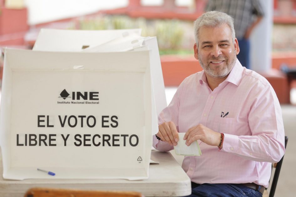 Morelia, Michoacán, 1 de junio de 2025.- El gobernador Alfredo Ramírez Bedolla votó este domingo 1 de junio en las elecciones históricas del Poder Judicial para elegir a jueces, juezas, magistradas y magistrados, ministras y ministros.