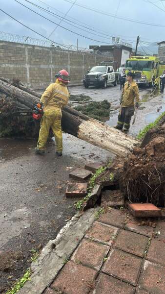 Asimismo, las rachas de viento provocaron la caída de un árbol en la calle Olimpiada Mundial, en la colonia Adolfo López Mateos.