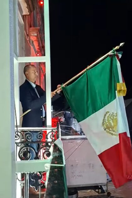 Con voz enérgica y espíritu de unidad, el edil proclamó: “¡Mexicanas y mexicanos, morelenses de corazón! ¡Vivan los héroes que nos dieron patria y libertad! ¡Viva Hidalgo, viva Morelos, viva Josefa Ortiz de Domínguez, viva nuestro municipio de Morelos, vivan nuestros paisanos migrantes, viva México, viva México, viva México!”.