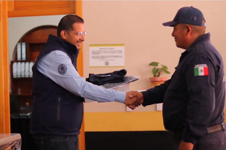 Nuevo San Juan Parangaricutiro, Michoacán a 4 de junio 2025.- Para garantizar el bienestar y la seguridad de cualquier sociedad , es necesario que sus cuerpos de seguridad cuenten con las herramientas necesarias para un desarrollo más profesional y humano, aseguró el diputado del Distrito 14 de Uruapan, Conrado Paz Torres durante la entrega de uniformes tácticos y compensaciones en vales para más de 50 elementos de tránsito y policía municipal de Nuevo San Juan Parangaricutiro.