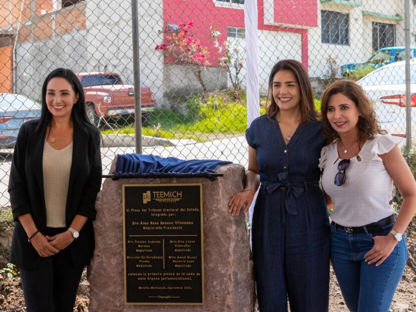 Morelia, Michoacán, a 19 de septiembre de 2025.- En representación del Presidente de Morelia, Alfonso Martínez Alcázar, la Síndica Municipal, Susan Melissa Vásquez Pérez, participó en la colocación de la primera piedra y develación de la placa de lo que será la nueva sede del Tribunal Electoral del Estado de Michoacán (TEEMICH).