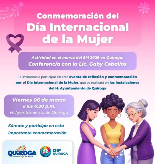Como parte de esta conmemoración, se realizará una conferencia impartida por la licenciada Gaby Ceballos, actividad que tiene como objetivo generar un espacio de diálogo y análisis sobre la importancia de la participación de las mujeres en la vida social, comunitaria y pública del municipio.