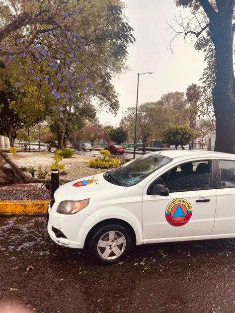 El reporte refiere que en la zona centro y Poniente se registraron granizadas y encharcamientos a nivel de banqueta, sin daños mayores.