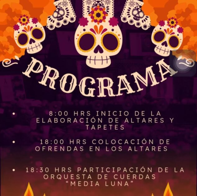 Las actividades continuarán el 1 de noviembre con una amplia programación que incluye la elaboración y colocación de altares y tapetes tradicionales, presentación de la orquesta de cuerdas “Media Luna”, recorrido de autoridades por los distintos altares, actuación del grupo de danza de la comunidad de San Nicolás y grupos artísticos de la Casa de Cultura.