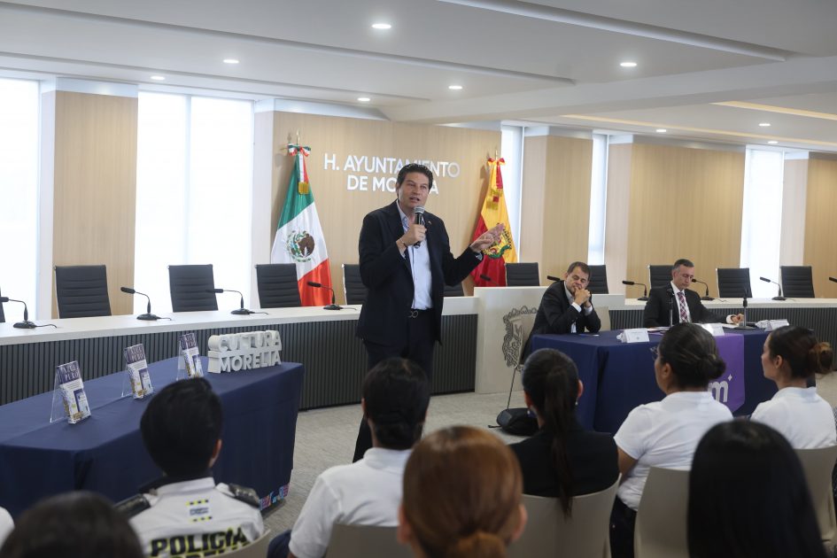 Durante su intervención, el alcalde Alfonso Martínez Alcázar resaltó los avances logrados en Morelia durante su administración en materia de seguridad. “Logramos crear una Policía Municipal con una imagen sólida, integrada por hombres y mujeres comprometidos con la ciudadanía. Esta acción disruptiva, marcó un antes y un después en la capital michoacana, consolidando un modelo de Justicia Cívica que se ha convertido en referente nacional”, afirmó.