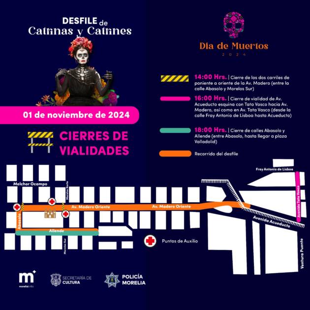 Los cierres viales se darán en tres momentos. El primero a las 14:00 horas en ambos sentidos de la avenida Madero, entre la Calle Abasolo y Morelos Sur para la instalación del escenario. El segundo cierre será a las 16:00 horas en la Avenida Acueducto, esquina con Tata Vasco hacia avenida Madero, así como en avenida Tata Vasco desde Acueducto hasta Fray Antonio de Lisboa. Y a las 18:00 horas se realizarán los cierres de las calles Abasolo y Allende hasta llegar a la Plaza Valladolid.