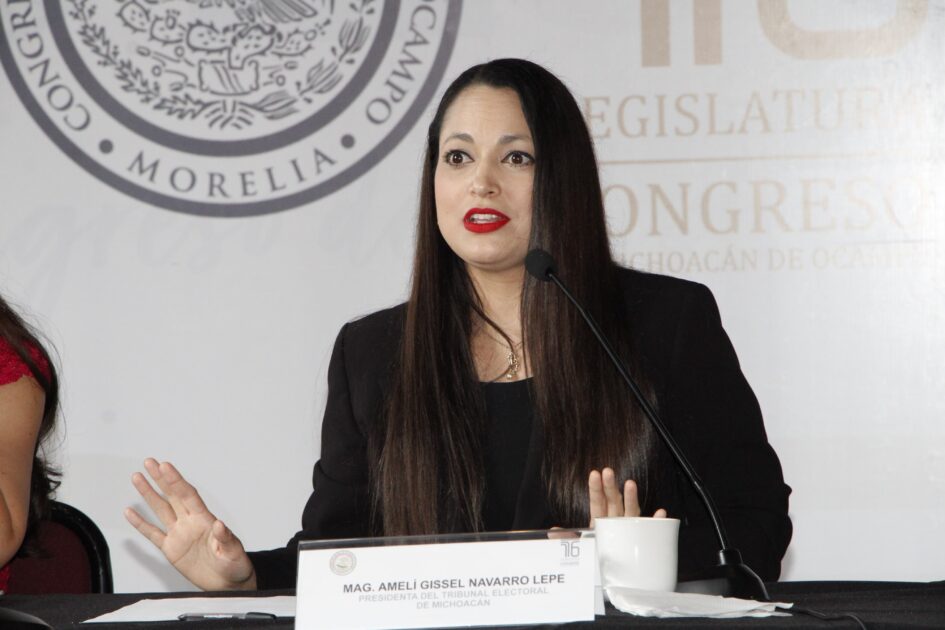 Morelia, Michoacán, a 20 de abril de 2026. Las mujeres indígenas son pieza clave para una democracia más justa e incluyente, afirmó la Magistrada Presidenta del Tribunal Electoral del Estado, Amelí Gissel Navarro Lepe, durante el coloquio “Las comunidades indígenas y la visión de las mujeres”, organizado por la Universidad Intercultural Indígena de Michoacán.