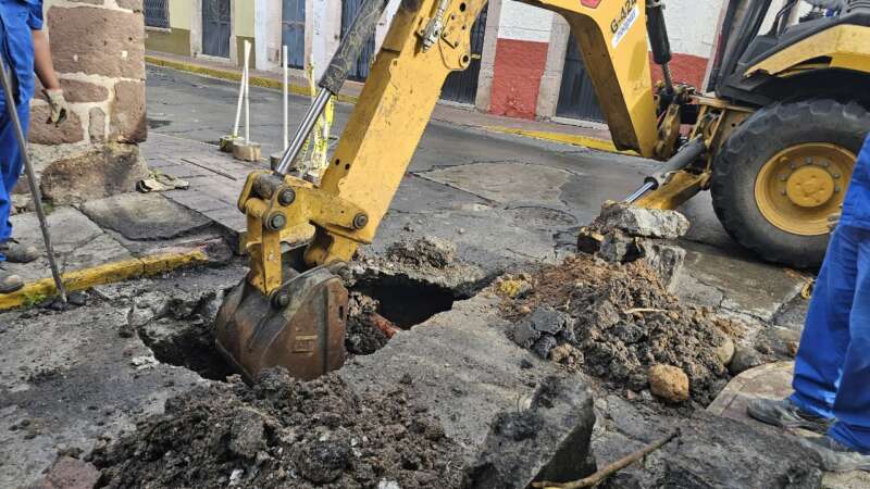 Morelia, Michoacán, a 22 de julio de 2024.- Ayer domingo por la tarde, personal de guardia del Organismo Operador de Agua Potable, Alcantarillado y Saneamiento de Morelia (OOAPAS) detectó un hundimiento en la esquina de Sánchez de Tagle y Bartolomé de las Casas, en la colonia Centro. De inmediato, se resguardó la zona para proteger a la ciudadanía y, a primera hora de este lunes se iniciaron los trabajos de reparación.