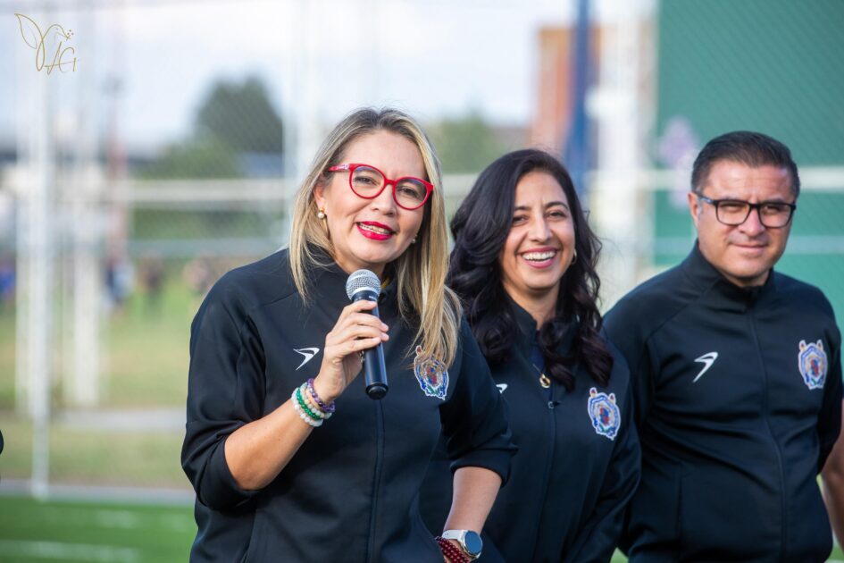 Con la presencia de niñas y niños, así como de alumnas y alumnos que forman parte de los equipos de fútbol de la institución, la rectora dio la bienvenida a las mamás y a los papás que acompañaron a sus hijas e hijos al arranque de este proyecto que busca promover el deporte en las y los infantes y adolescentes.