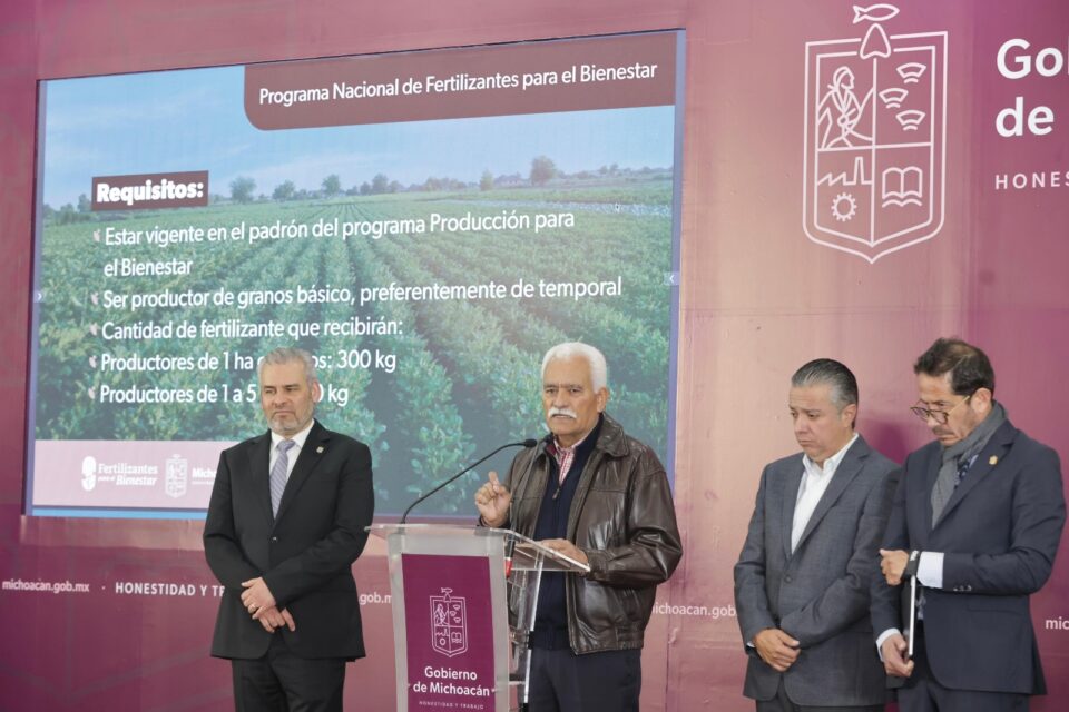 Morelia, Michoacán a 2 de enero de 2024.- El gobernador Alfredo Ramírez Bedolla anunció que se distribuirán 43 mil 760 toneladas de fertilizante gratuito en beneficio de 77 mil 334 pequeños productores agrícolas inscritos del estado, con lo cual, Michoacán será una de las primeras entidades en repartir este apoyo del Programa Nacional de Fertilizantes para el Bienestar.