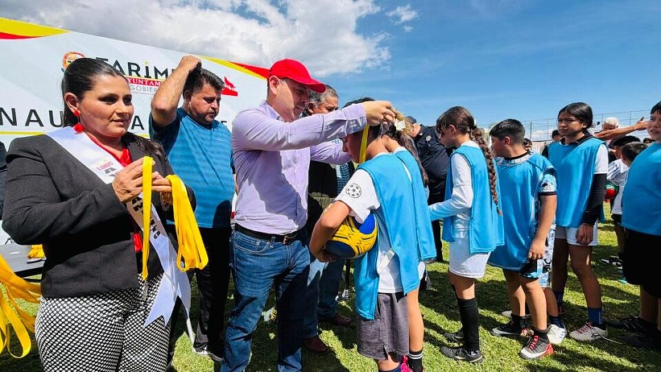 Durante el evento, las autoridades realizaron el corte de listón y el alcalde dio la patada inicial, marcando la reapertura de esta cancha de fútbol con medidas profesionales, diseñada para impulsar el deporte, la sana convivencia y el desarrollo integral de la niñez y juventud del municipio.