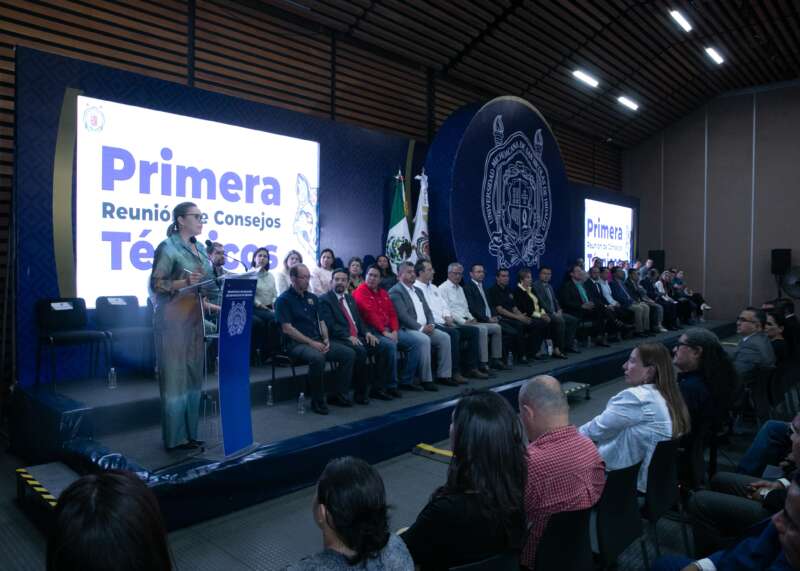 Flanqueada por integrantes del gabinete, directoras y directoras de facultades, escuelas e institutos, y frente a consejeras y consejeros universitarios y técnicos, la rectora agradeció la presencia de las y los asistentes.