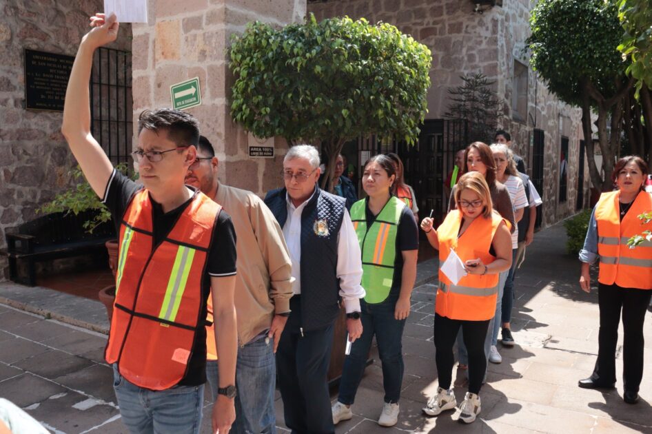 En ese sentido, el jefe del Departamento de Protección Universitaria, Erick Mercado Cortés explicó que este año hubo una plena coordinación con las y los directores de las diferentes escuelas, facultades e institutos nicolaitas, logrando con ello una mayor participación de la comunidad universitaria en esta dinámica para la cual se formaron tres brigadas en cada dependencia, una de primeros auxilios, una de búsqueda y la brigada encargada de desahogar los inmuebles y citarlos en los diferentes puntos de reunión.