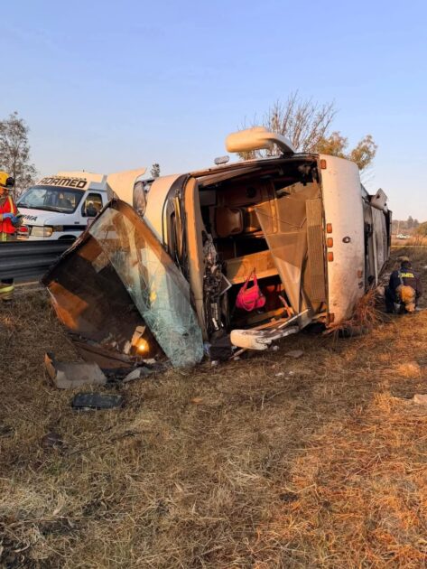 Morelia Michoacán a 22 de noviembre de 2025.- Un saldo preliminar de 7 muertos y 17 lesionados dejó la volcadura de un autobús de turismo que salió de Uruapan con destino a Tlalpujahua sobre la carretera Morelia–Pátzcuaro, a la altura de la localidad de Tiripetío, la mañana de este sábado.